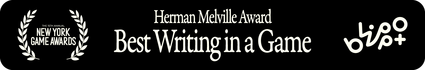 Blippo+ is being recognized alongside the big dogs! We took home the Herman Melville Award for Best Writing at the 2026 New York Game Awards, beating out some huge titles. We’re touched that the New York Games Critics Circle found our bonanza of alien programming worthy of recognition. It’s really a testament to the weird, wonderful world built by our excellent team and incredible cast.